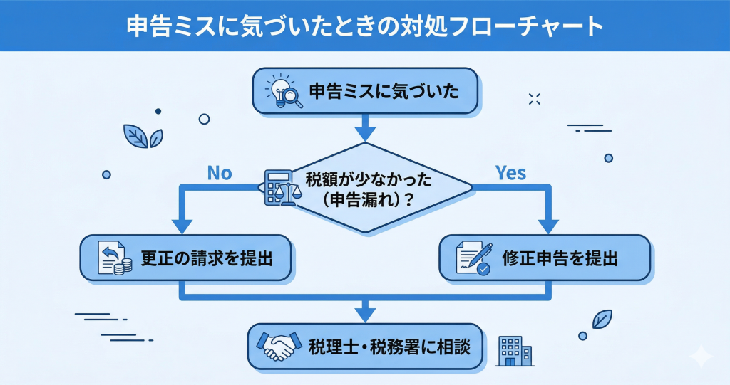 - 申告ミスに気づいたら放置しない——すぐに修正申告または更正の請求を